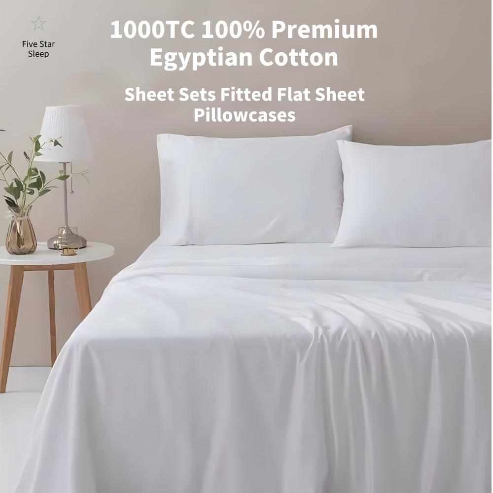 1000TC 100% Premium Egyptian Cotton Sheet Sets Fitted Flat Sheet Pillowcases All Size