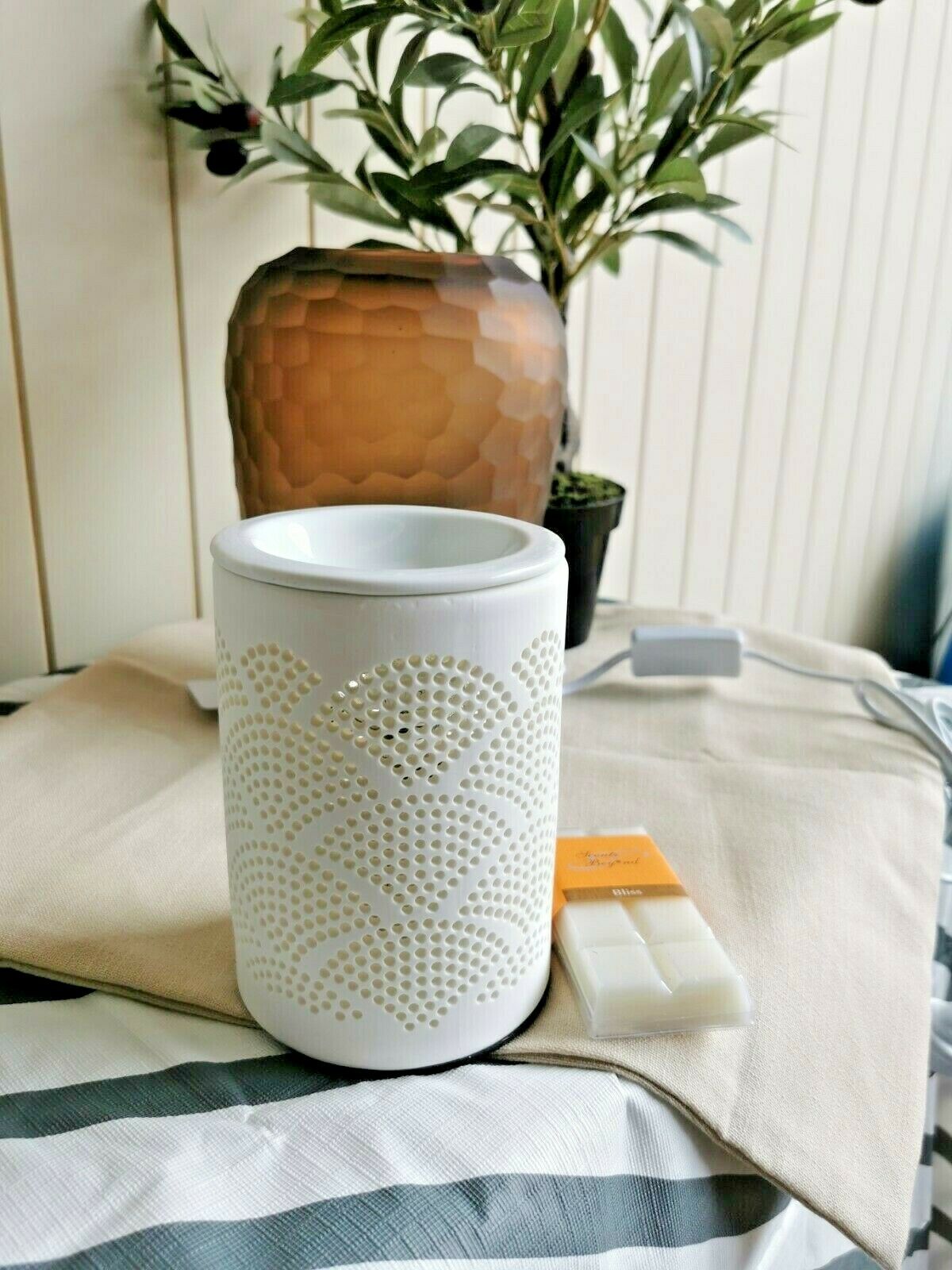 15cm Ceramic Electric Oil Burner - White Shell Pattern b02640