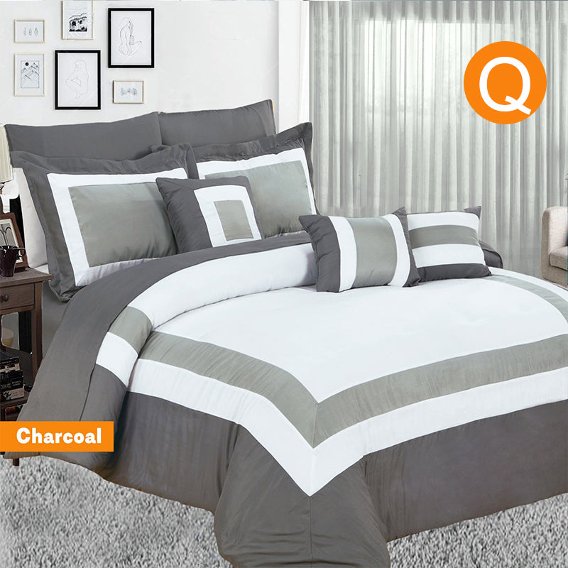 Home Fashion 10 Piece Soft Bed Comforter and Sheet Sets Bedspread Cushions Pillowcase Set Charcoal