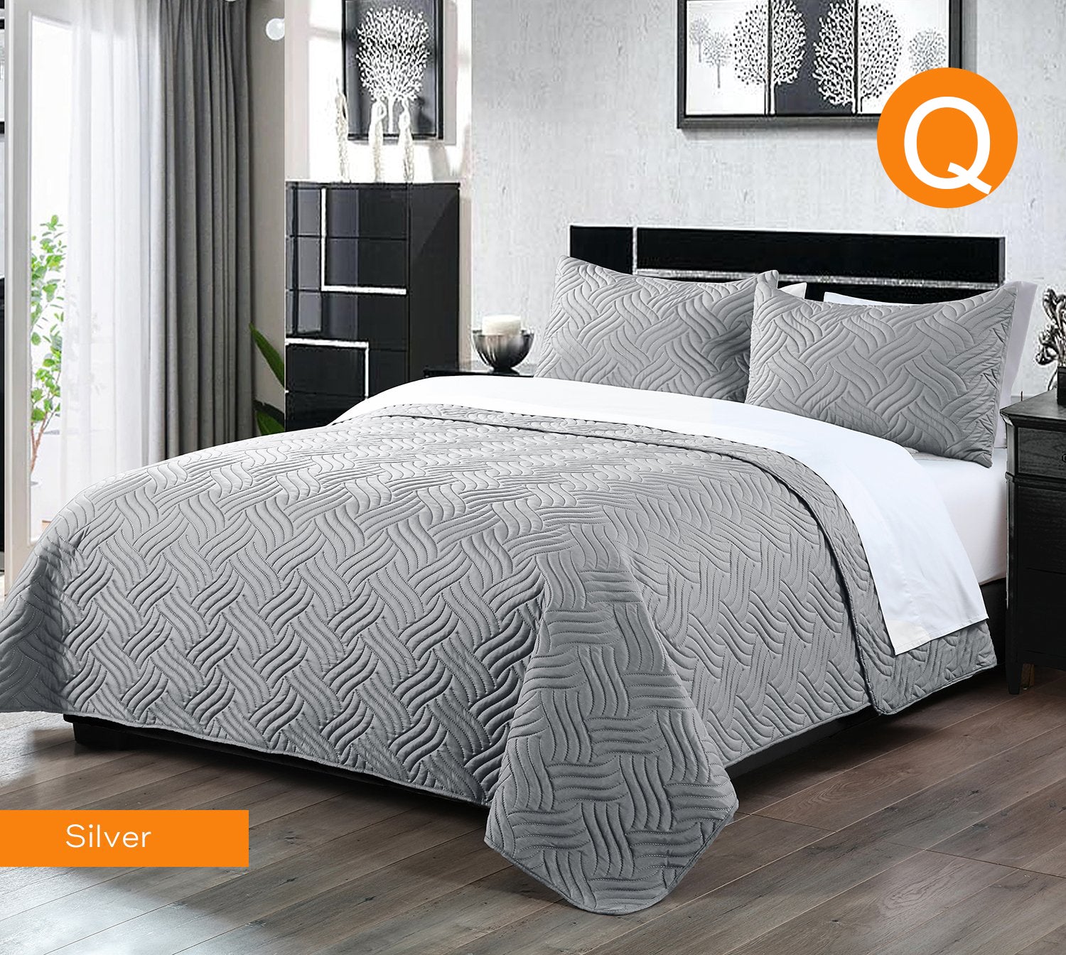 Home Fashion 3 PCS Soft Premium Bed Embossed Coverlet Queen King Silver
