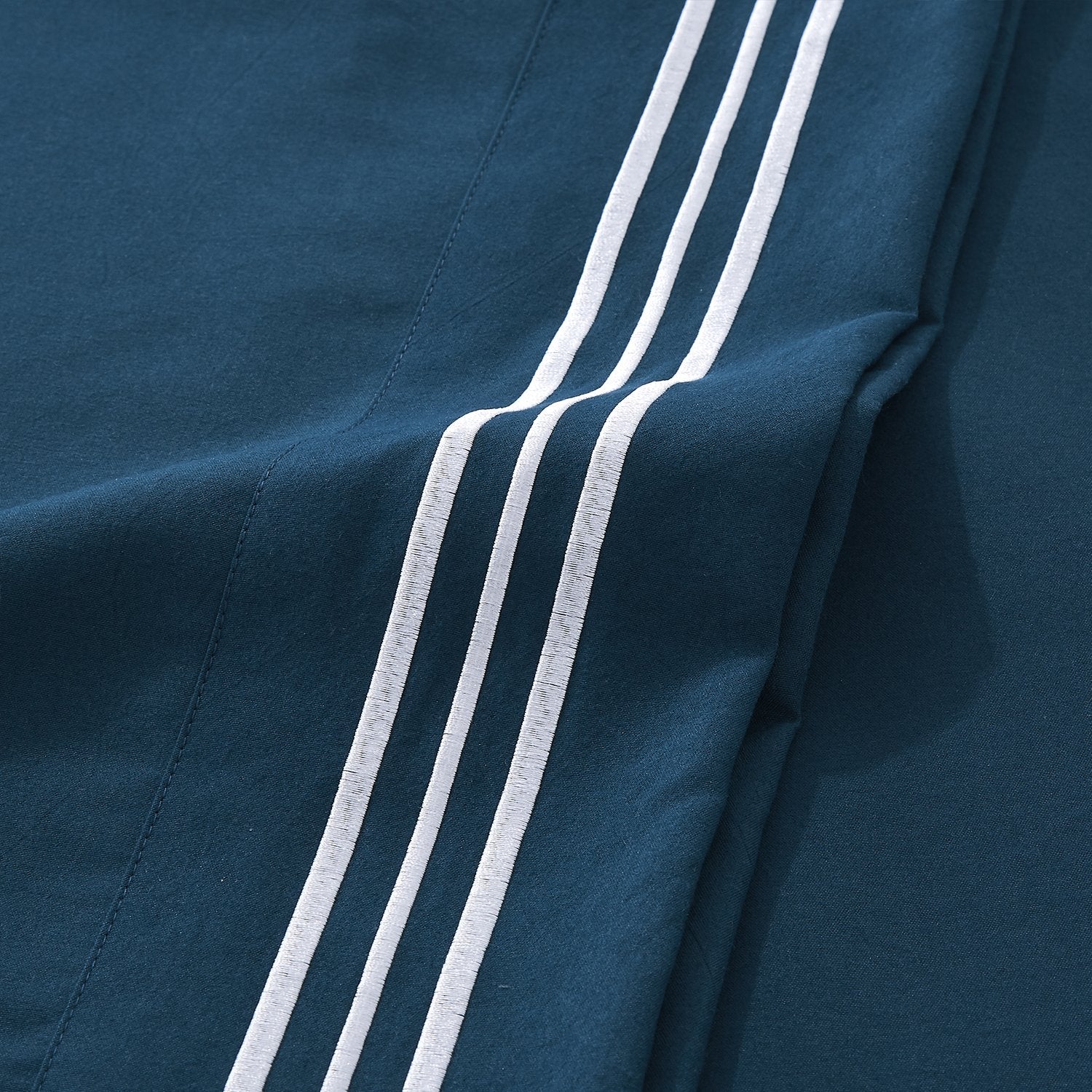 Soft Microfibre Embroidered Stripe Sheet Set Sailor Blue Pillowcase White Stripe