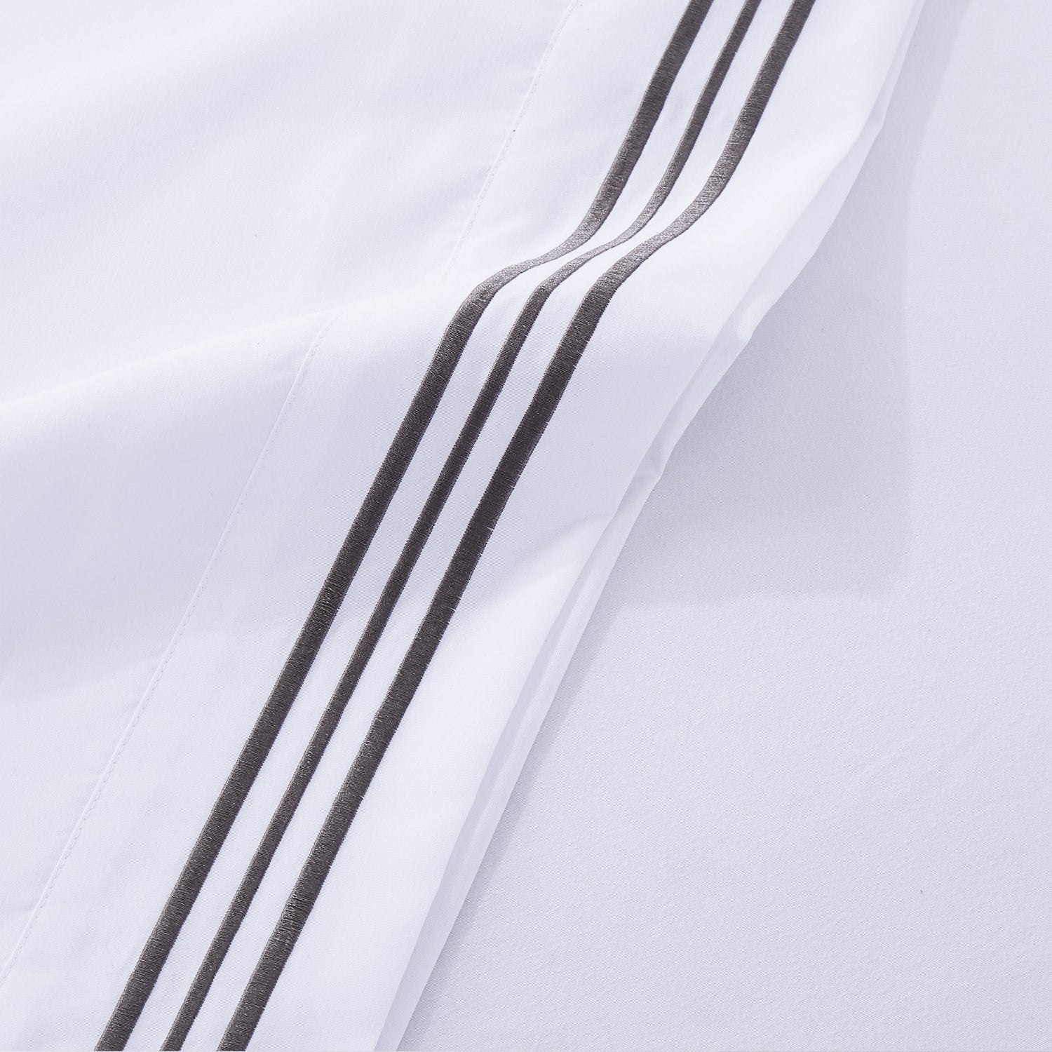 Soft Microfibre Embroidered Stripe Sheet Set White Pillowcase Charcoal Stripe