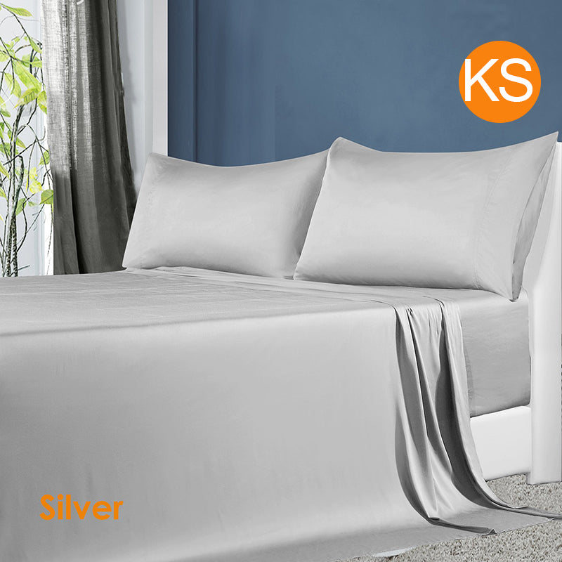 Softouch 100% Natural Premium Bamboo Sheet Sets Pillowcases Flat Fitted Sheet All Size Silver