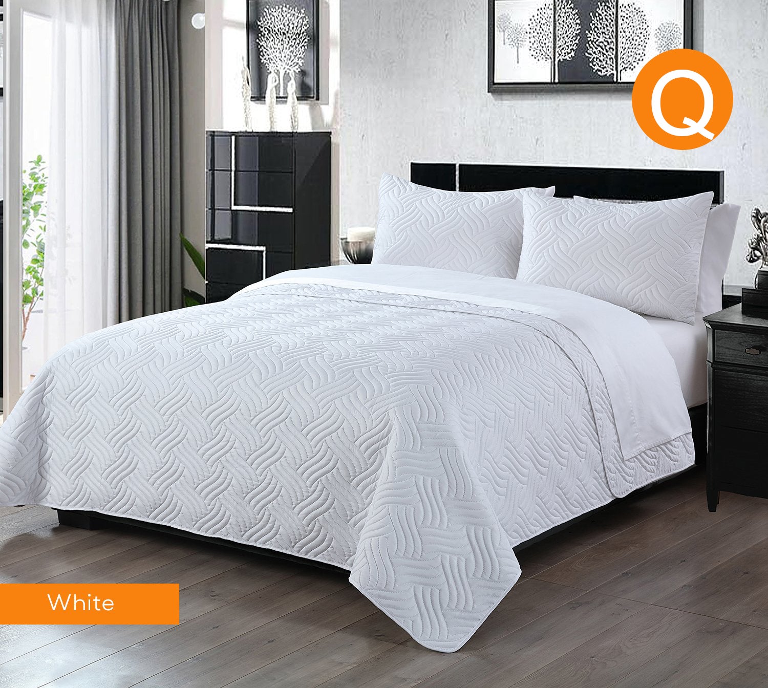 Home Fashion 3 PCS Soft Premium Bed Embossed Comforter Set Queen King White