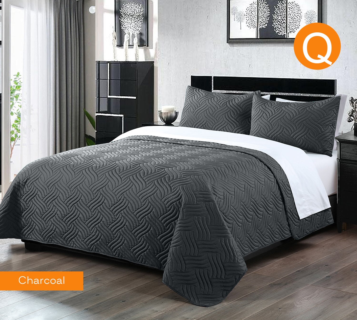 Home Fashion 3 PCS Soft Premium Bed Embossed Coverlet Queen King Charcoal