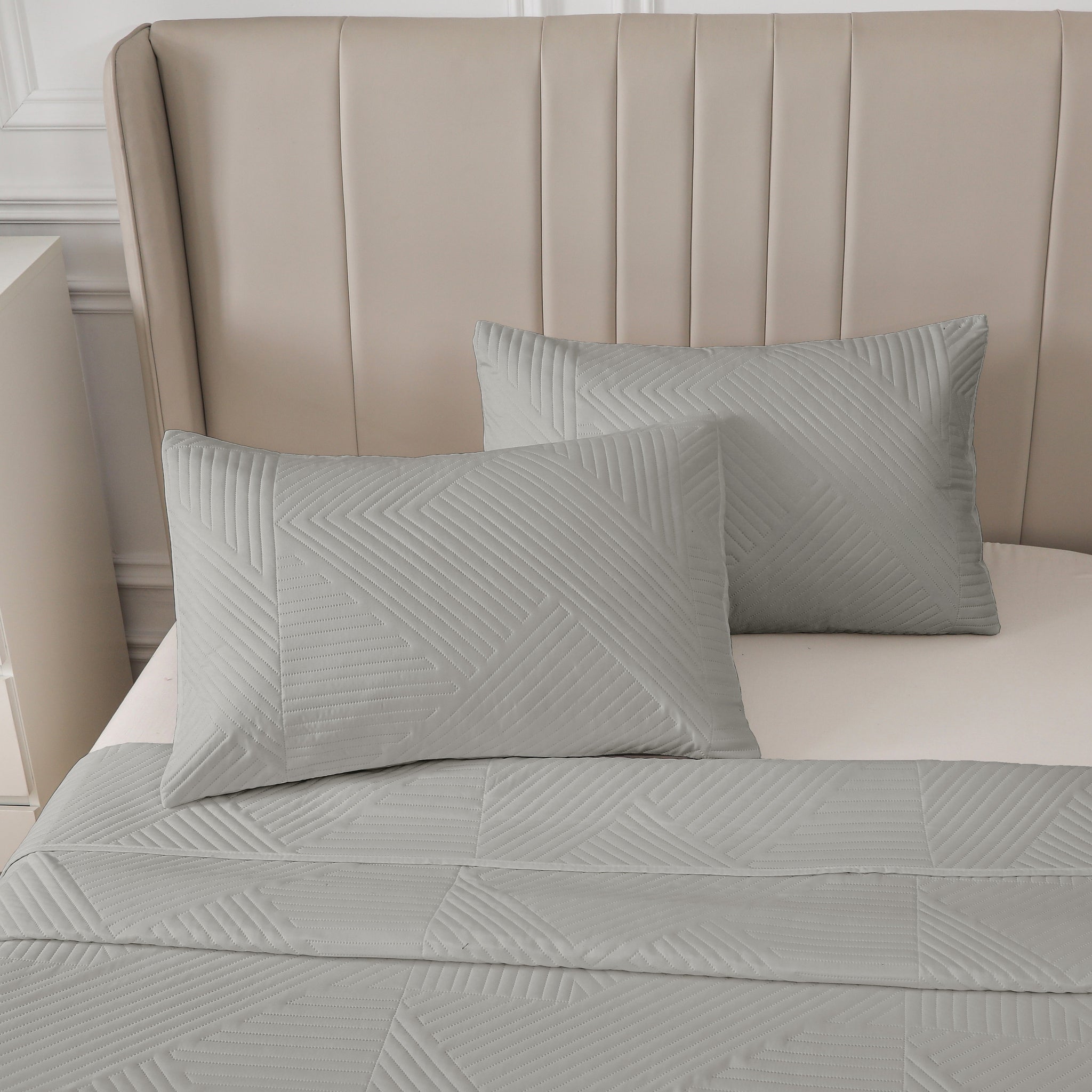 - This contemporary set includes 1 Coverlet and 2 pillowcases;