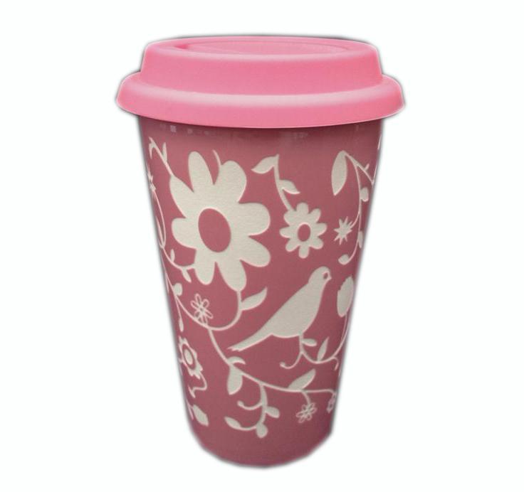 Double Insulated Mug - Laser cut Bird ?& Flowers Pink