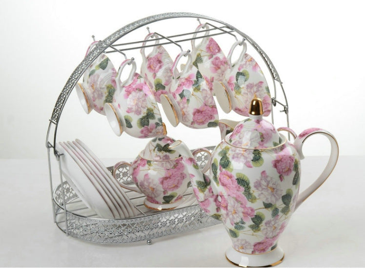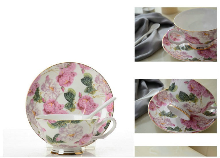 New Design Purple Flowers Bone China Tea & Coffee Set