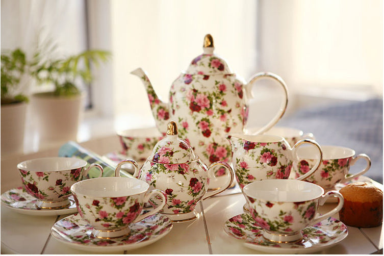 Retro??Flowers Bone China Tea & Coffee Set
