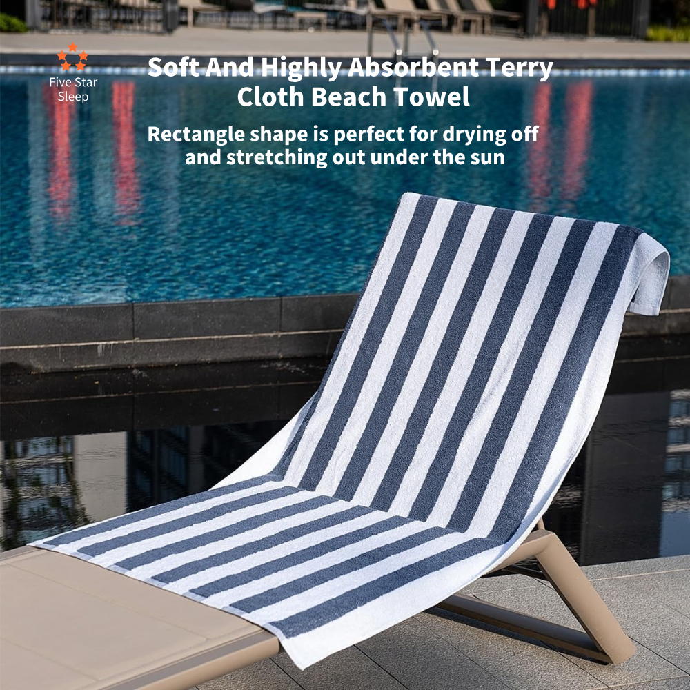 Striped Cotton Soft Highly Absorbent Terry Cloth Beach Towel