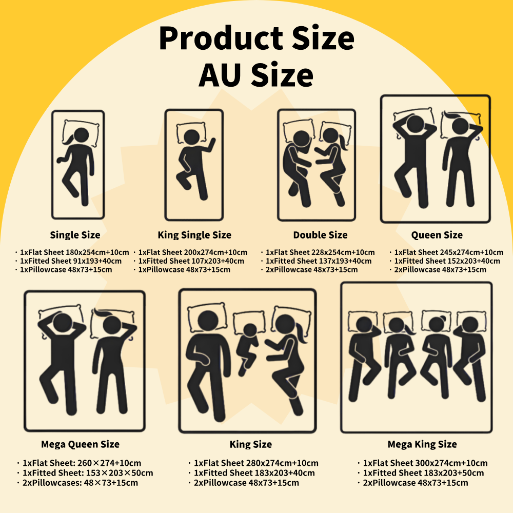 Size: Single, King Single, Double, Queen and King
